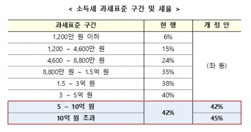 [세법개정안] 소득세 최고세율 45%로 인상