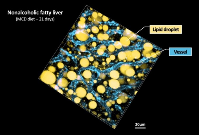 연구팀은 "이번에 확립한 간세포 지방구의 3차원 영상 기반 정밀 분석 기법은 지방간 단계뿐 아니라... (논문명 : Intravital longitudinal imaging of hepatic lipid droplet accumulation in a murine model for nonalcoholic fatty liver disease. 제1저자...