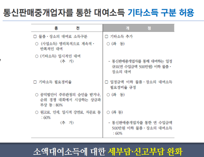 2. 통신판매중개업자를 통한 대여소득 기타소득 구분 허용