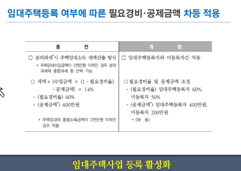 5. 임대 주택 등록 여부에 따른 필요 경비 · 공제 금액 차등 적용