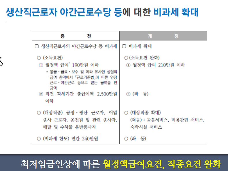 4. 생산직 근로자 고속 근로 수당 등에 대한 비과세 확대