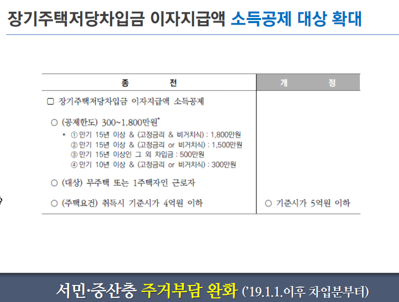 서민 · 중산층 주거 부담 완화 ('19 .1.1. 이후 차입 분부터)