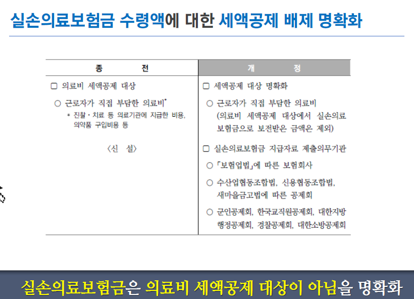 실손의료보험금은 의료비 세액공제 대상이 아님을 명확화