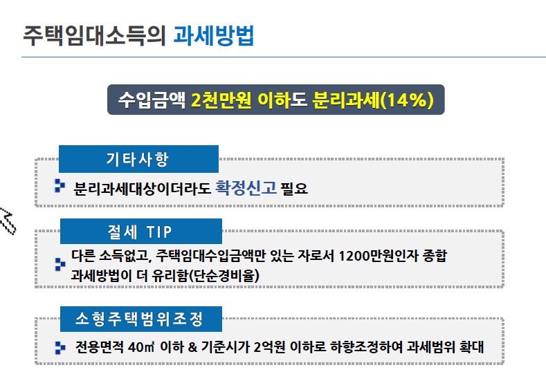수입금액 2천만원 이하 도 분리과세 (14%)