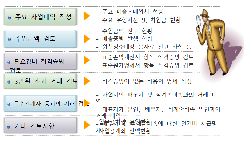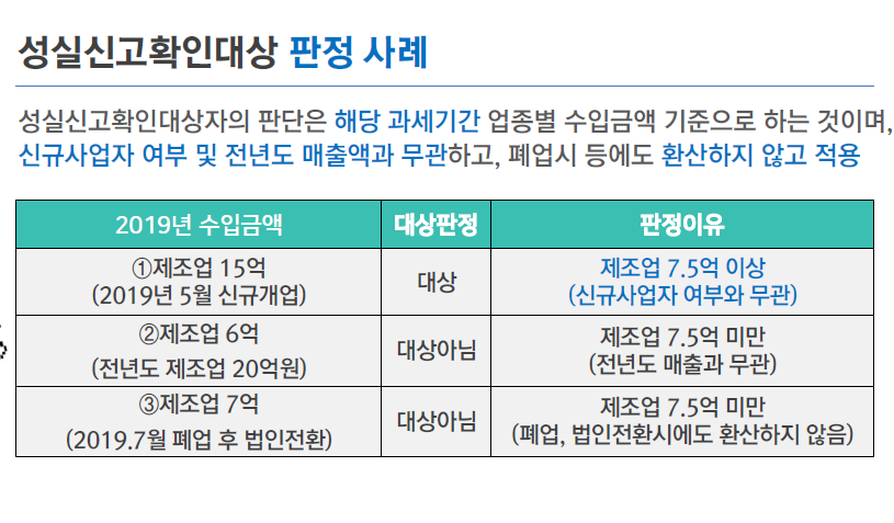해당 과세기간의 수입금액 이 업종별로 일정 규모 이상인 사업자는 장부기장 내용의 적정성 여부 를 세무사 등에게 확인받은 후 신고하게 함