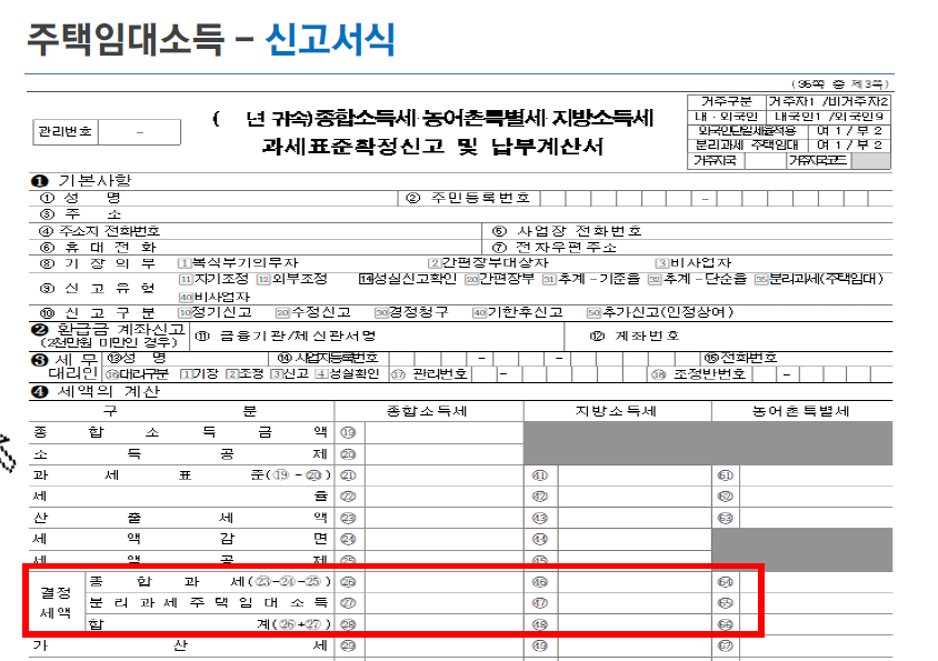 부동산임대소득 신고 / 주택임대소득 -신고서식