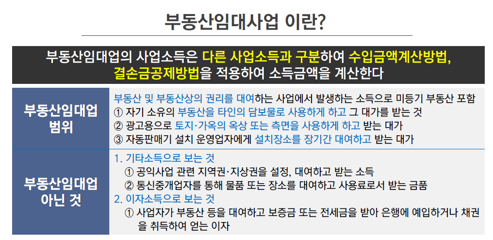 부동산임대소득의 총수입금액은 부동산 등을 임대하고 그 대가로 해당 과세기간에 수입하였거나 수입할 금액의 합계액 으로 한다