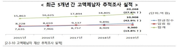 국세청, 지난해 고액체납자 추징금 2조 돌파