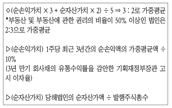 내용: 개별적 판단에는 상속증여세법의 평가규정이 평가기준일 현재의 주식가치를 정확히 파악하려는 데 있다는 것이 판단의 기준이 돼야 한다. 그 판단의 기준은 "퇴직급여충당금 과소계상액을 각 사업연도소득에서 차감하는...