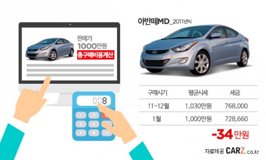 한편 같은 차량의 올 1월 평균 시세는 1,000만원이다. 취득세와 등록세 70만원, 공채매입비 43,012원, 인지대 4... kr) 관계자는 "중고차 거래 시 세금 절감 효과를 보기 위해서는 세금에 관련된 정확한 이해와 계산이 필요하다"고...