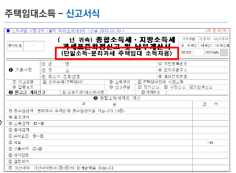 부동산임대소득 신고 / 주택임대소득 -신고서식