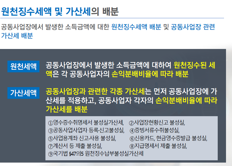 공동사업장에서 발생한 소득금액에 대한 원천징수세액 배분 및 공동사업장 관련 가산세 배분