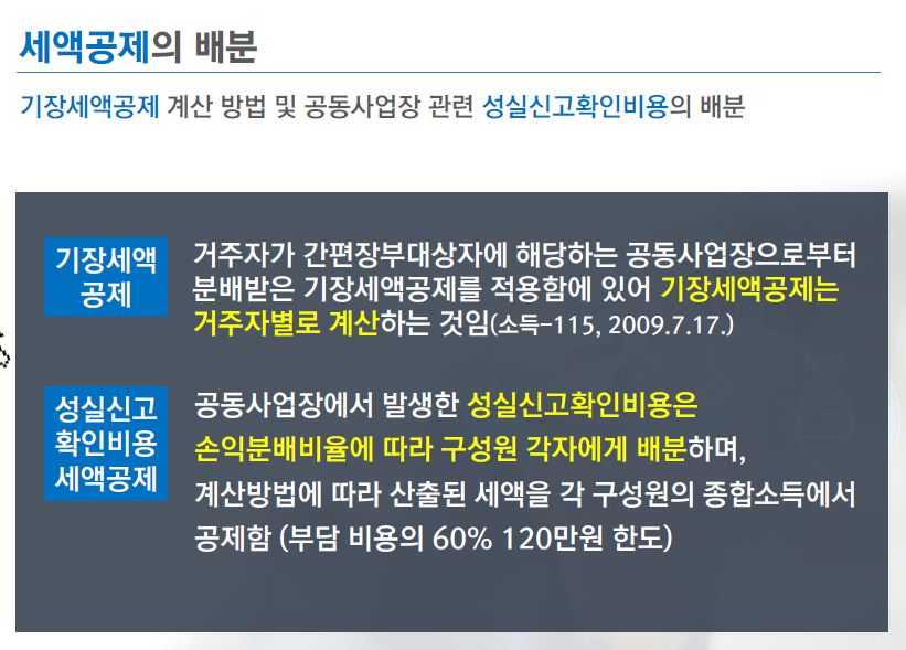 기장세액공제 계산 방법 및 공동사업장 관련 성실신고확인비용 의 배분